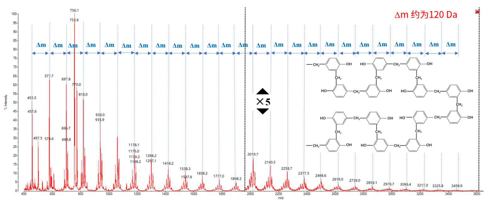 光刻胶中酚醛树脂的质谱图(m/z 1-3600)