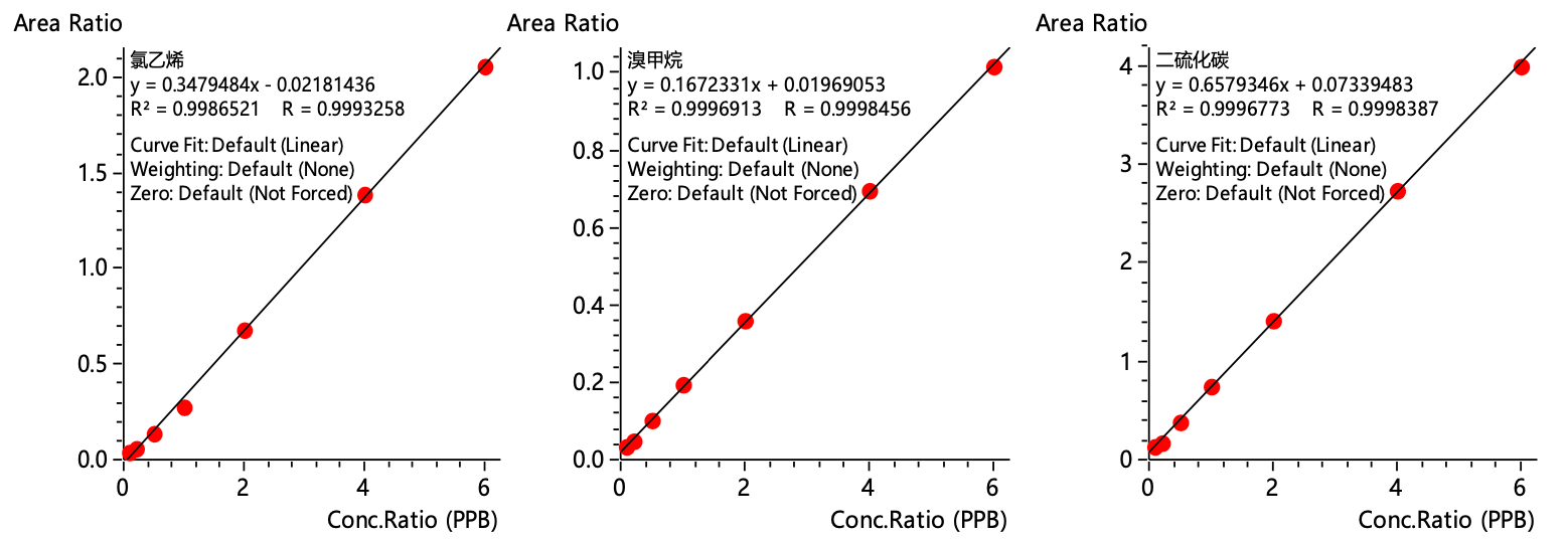在芯片的生产制造环境中,由于需要在纳米级别尺度生产和加工集成电路,对空气环境的洁净度要求非常高,极其微小的污染都会严重影响产品的质量。采用岛津GCMS结合大气浓缩自动进样系统对半导体洁净室中65种痕量有机污染物监测分析,在0.1~6.0 nmol/mol浓度范围内,各组分标准曲线线性良好。