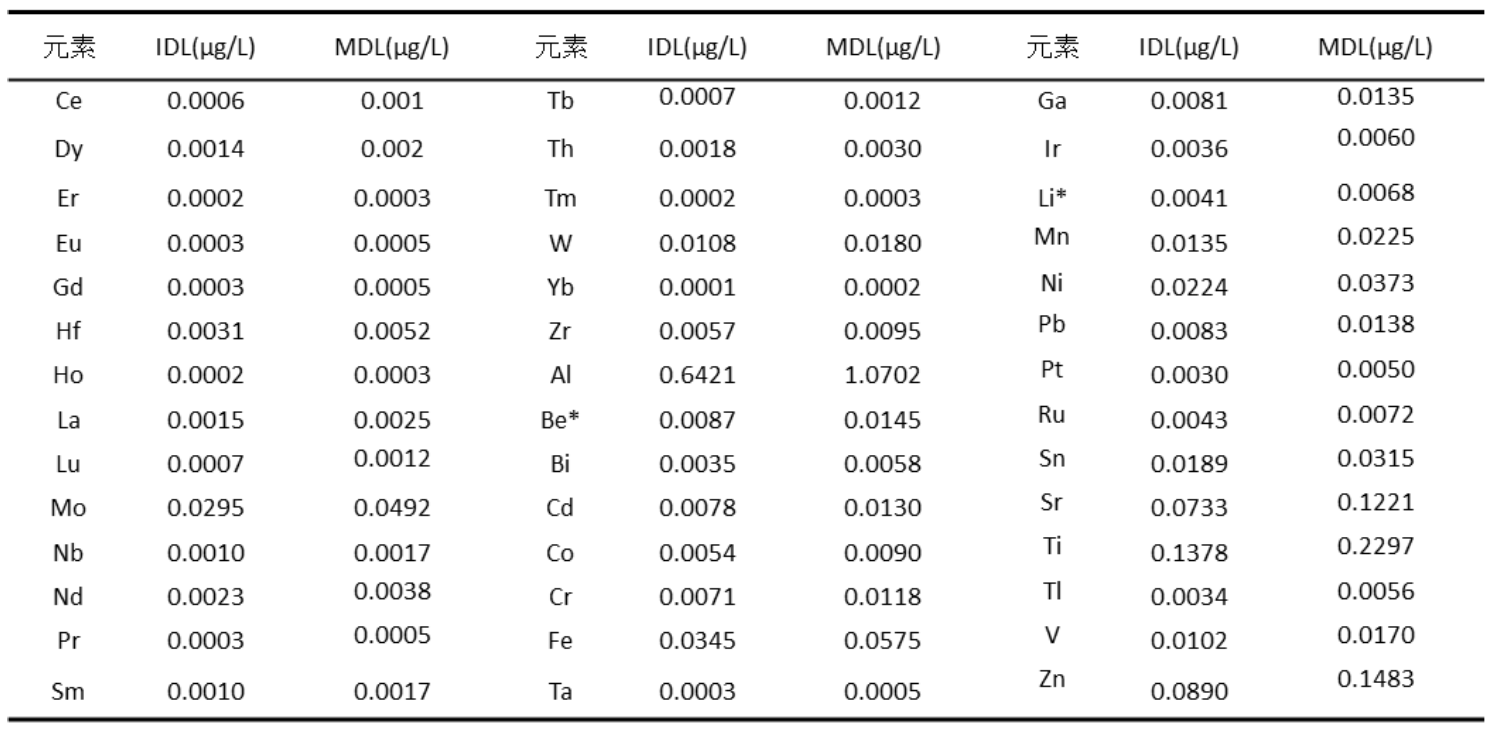电子特气广泛应用于半导体制造中的清洗、成膜、光刻、刻蚀、掺杂等工序,其纯度对于半导体器件的质量与成品率影响很大。气体中的金属杂质是使半导体产生漏电、晶格缺陷和断线的主要原因。参考《GB/T 34972-2017电子工业用气体中金属含量的测定 电感耦合等离子体质谱法》,使用岛津ICPMS-2050系列测试电子气体氩气中多种元素的含量。方法检出限在0.0002~1.0702 μg/L范围。